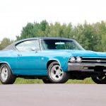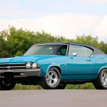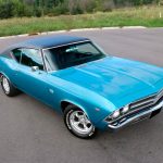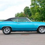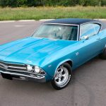 Step back in time with this stunning 1969 Chevrolet Chevelle, a true American muscle car classic. This timeless beauty boasts a captivating Azure Turquoise exterior, a color that radiates a cool, vintage charm, making it stand out from the crowd. Complementing the vibrant exterior is a sleek black interior, offering a luxurious and sporty contrast.